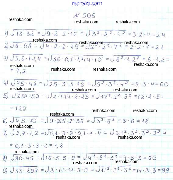 Решака - онлайн ответы Алгебра Мерзляк, Полонский за 8 класс Учебник ФГОС 2016 - 506