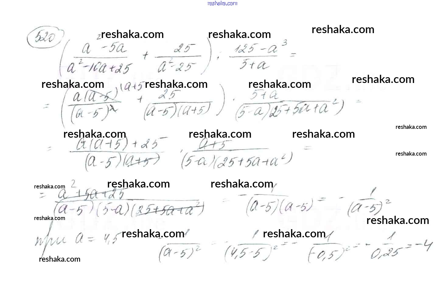 Решака - онлайн ответы Алгебра Мерзляк, Полонский за 8 класс Учебник ФГОС 2016 - 520