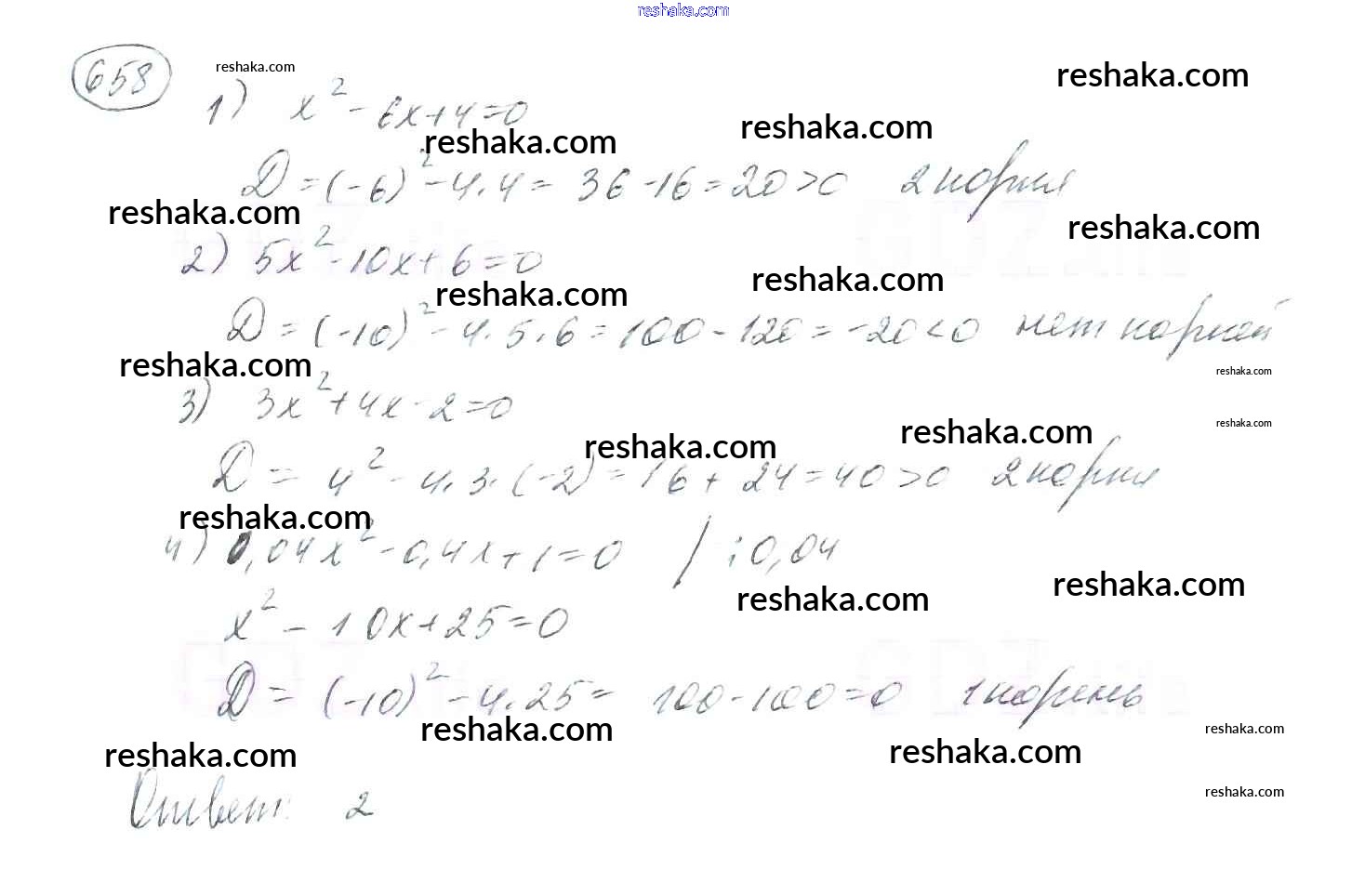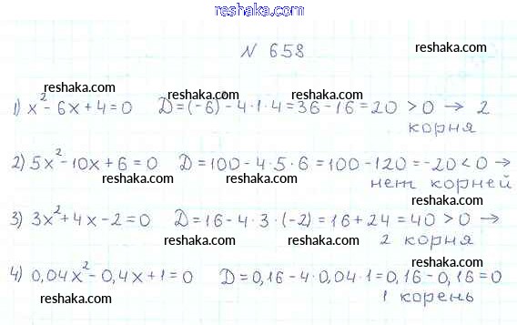 Представляем вам сборники по Алгебре, с готовыми ответами к Учебнику Мерзляк школьной программы для учеников восьмой класса. Это не просто гдз с ответом, а с подсказками, как верно решить §20. Формула корней квадратного уравнения Глава 3. Квадратные уравнения 658. Проверяй домашку с умом и получай высший балл!