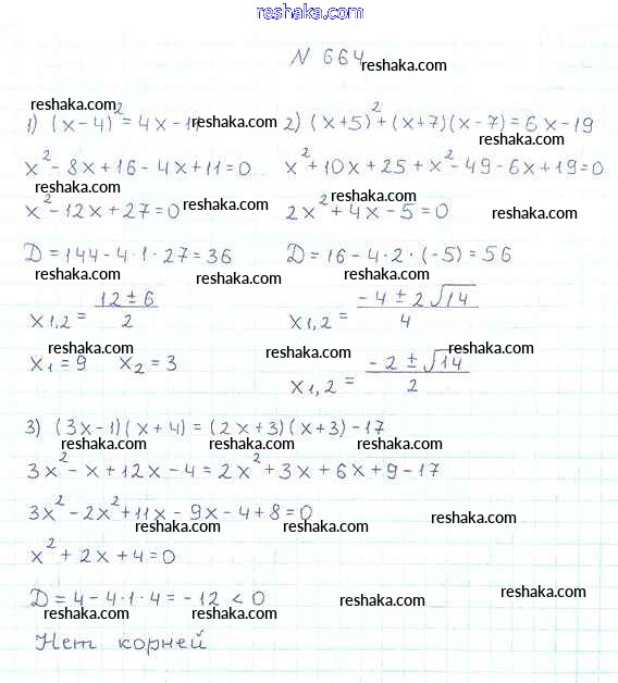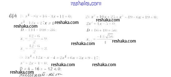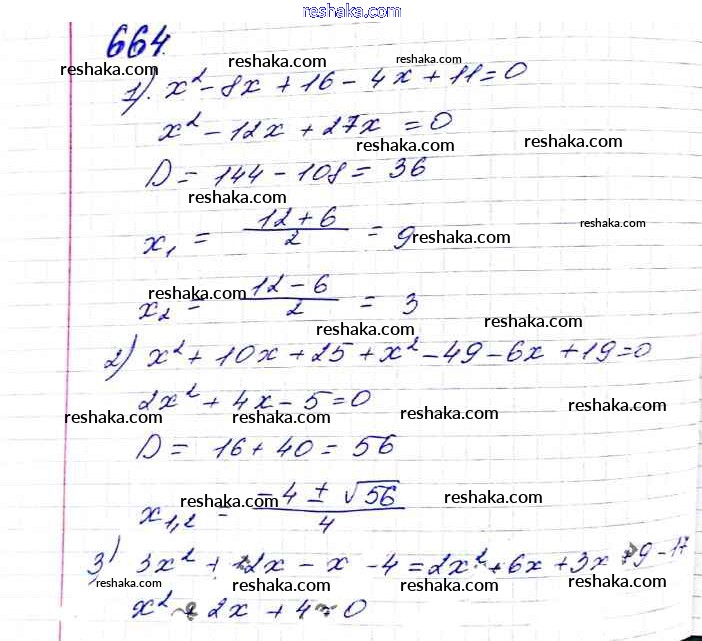 Представляем вам сборники по Алгебре, с готовыми ответами к Учебнику Мерзляк школьной программы для учеников восьмой класса. Это не просто гдз с ответом, а с подсказками, как верно решить §20. Формула корней квадратного уравнения Глава 3. Квадратные уравнения 664. Проверяй домашку с умом и получай высший балл!