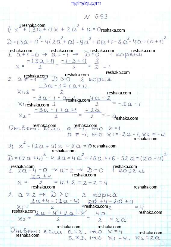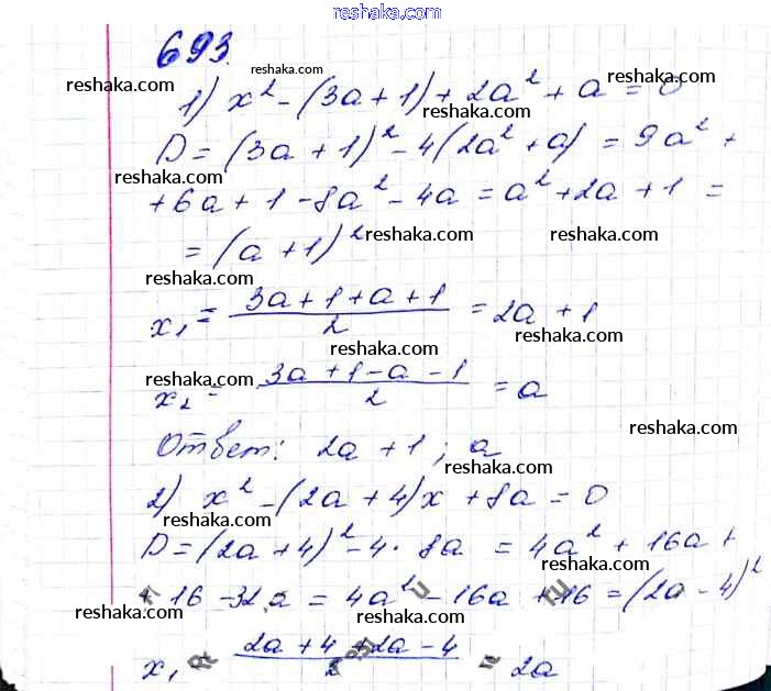 Представляем вам сборники по Алгебре, с готовыми ответами к Учебнику Мерзляк школьной программы для учеников восьмой класса. Это не просто гдз с ответом, а с подсказками, как верно решить §20. Формула корней квадратного уравнения Глава 3. Квадратные уравнения 693. Проверяй домашку с умом и получай высший балл!
