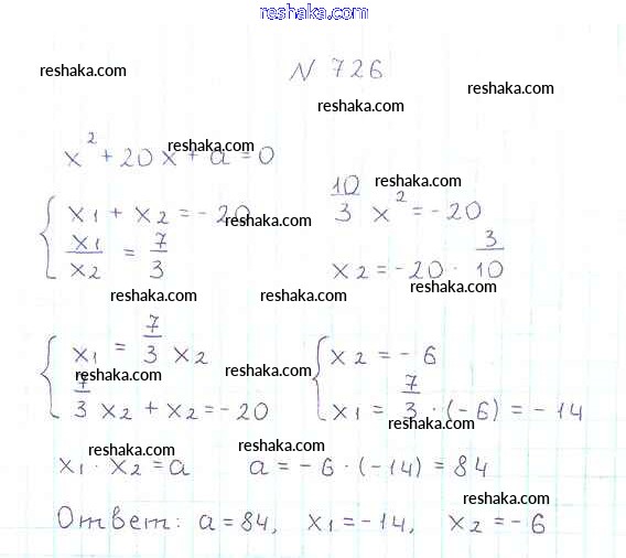 Представляем вам сборники по Алгебре, с готовыми ответами к Учебнику Мерзляк школьной программы для учеников восьмой класса. Это не просто гдз с ответом, а с подсказками, как верно решить §21. Теорема Виета Глава 3. Квадратные уравнения 726. Проверяй домашку с умом и получай высший балл!