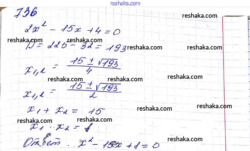 Решака - онлайн ответы Алгебра Мерзляк, Полонский за 8 класс Учебник ФГОС 2016 - 736