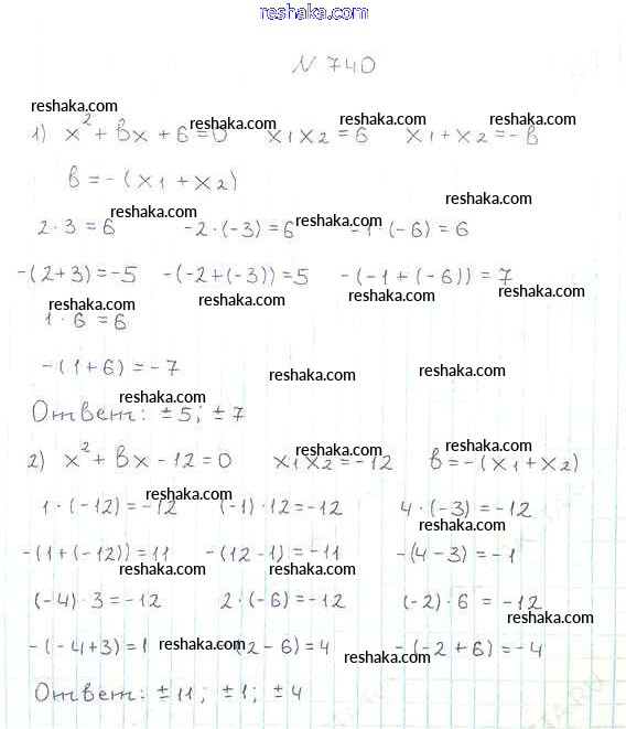 Представляем вам сборники по Алгебре, с готовыми ответами к Учебнику Мерзляк школьной программы для учеников восьмой класса. Это не просто гдз с ответом, а с подсказками, как верно решить §21. Теорема Виета Глава 3. Квадратные уравнения 740. Проверяй домашку с умом и получай высший балл!