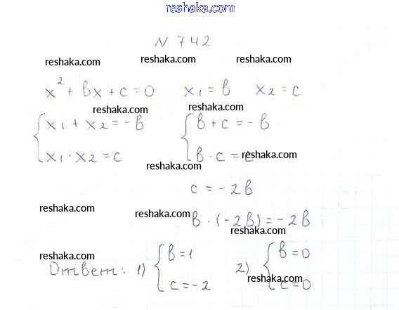 Представляем вам сборники по Алгебре, с готовыми ответами к Учебнику Мерзляк школьной программы для учеников восьмой класса. Это не просто гдз с ответом, а с подсказками, как верно решить §21. Теорема Виета Глава 3. Квадратные уравнения 742. Проверяй домашку с умом и получай высший балл!