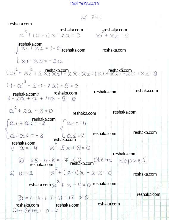 Представляем вам сборники по Алгебре, с готовыми ответами к Учебнику Мерзляк школьной программы для учеников восьмой класса. Это не просто гдз с ответом, а с подсказками, как верно решить §21. Теорема Виета Глава 3. Квадратные уравнения 744. Проверяй домашку с умом и получай высший балл!