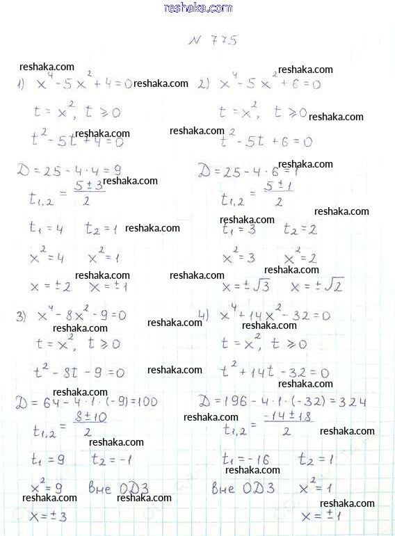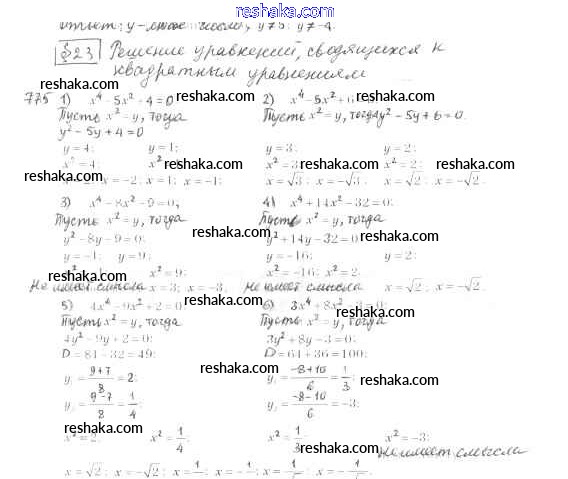 Представляем вам сборники по Алгебре, с готовыми ответами к Учебнику Мерзляк школьной программы для учеников восьмой класса. Это не просто гдз с ответом, а с подсказками, как верно решить §23. Решение уравнений, сводящихся к квадратным уравнениям Глава 3. Квадратные уравнения 775. Проверяй домашку с умом и получай высший балл!