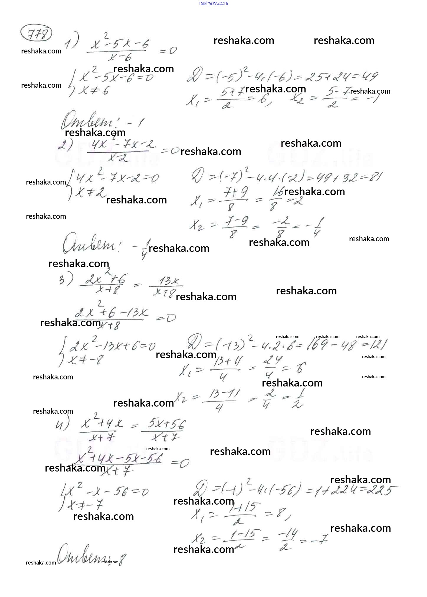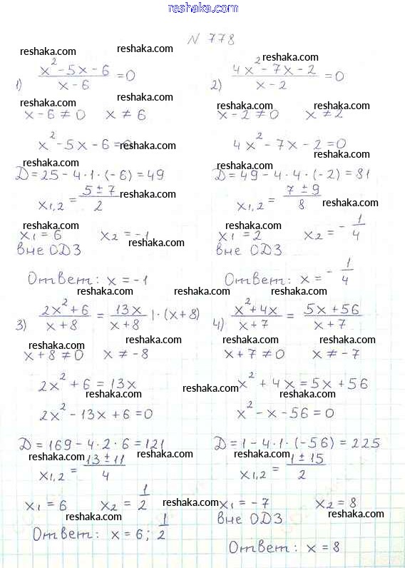 Решака - онлайн ответы Алгебра Мерзляк, Полонский за 8 класс Учебник ФГОС 2016 - 778