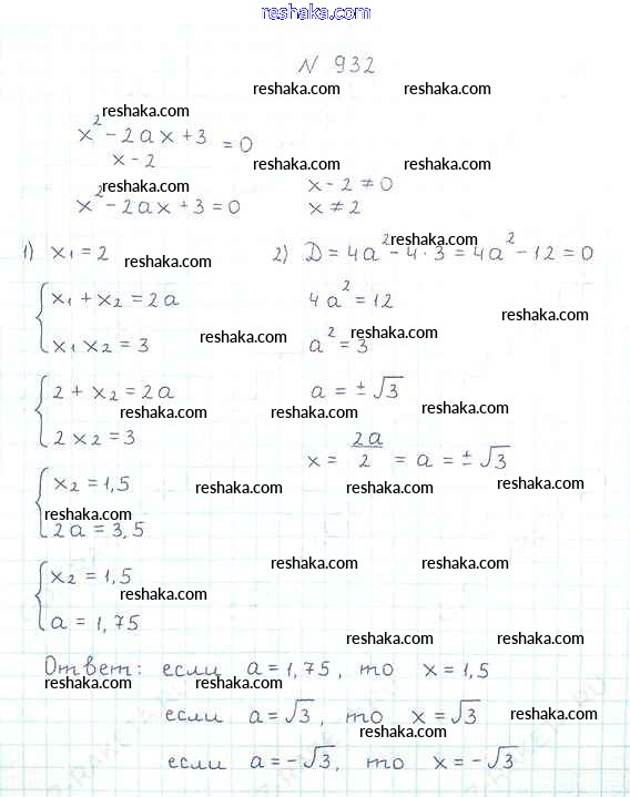 Решака - онлайн ответы Алгебра Мерзляк, Полонский за 8 класс Учебник ФГОС 2016 - 932