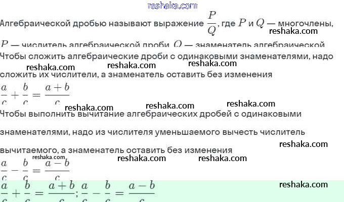 Представляем вам сборники по Алгебре, с готовыми ответами к Учебнику Мордкович школьной программы для учеников восьмой класса. Это не просто гдз с ответом, а с подсказками, как верно решить §3. Сложение и вычитание алгебраических дробей с одинаковыми знаменателями 2. Проверяй домашку с умом и получай высший балл!