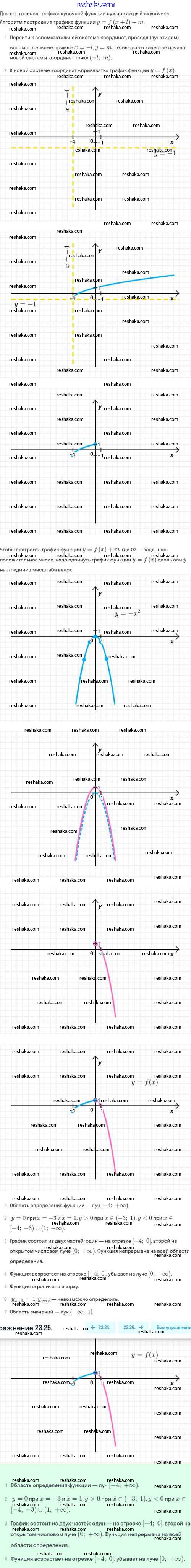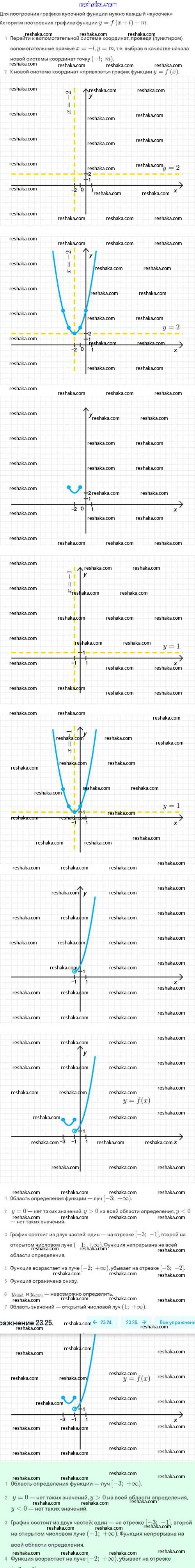 Представляем вам сборники по Алгебре, с готовыми ответами к Задачнику Мордкович школьной программы для учеников восьмой класса. Это не просто гдз с ответом, а с подсказками, как верно решить §23. Как построить график функции y=f(x+l)+m, если известен график функции y=f(x) 23.25. Проверяй домашку с умом и получай высший балл!