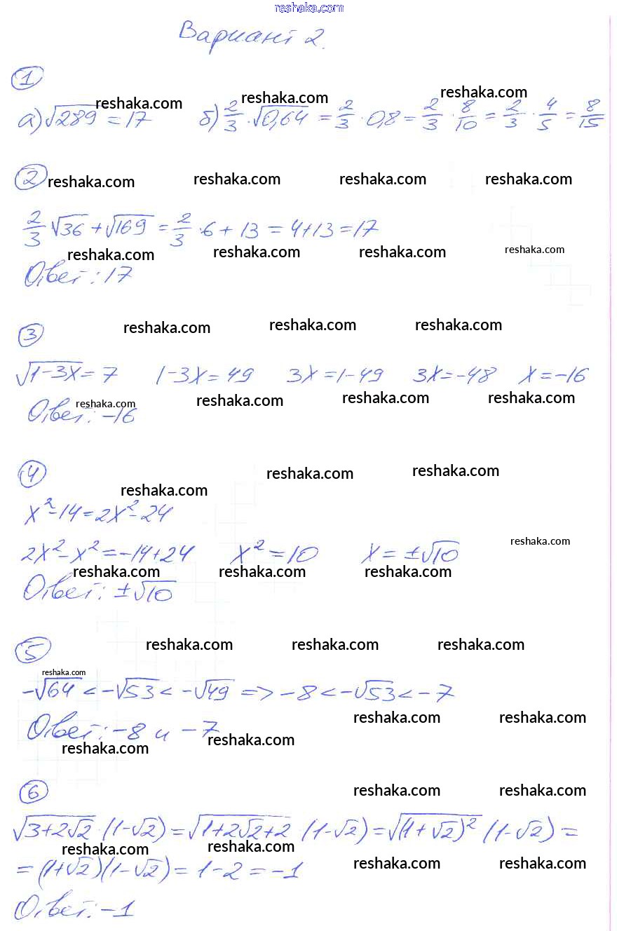 Решака - онлайн ответы Алгебра Попов за 8 класс Дидактические материалы ФГОС 2014 - вариант-2