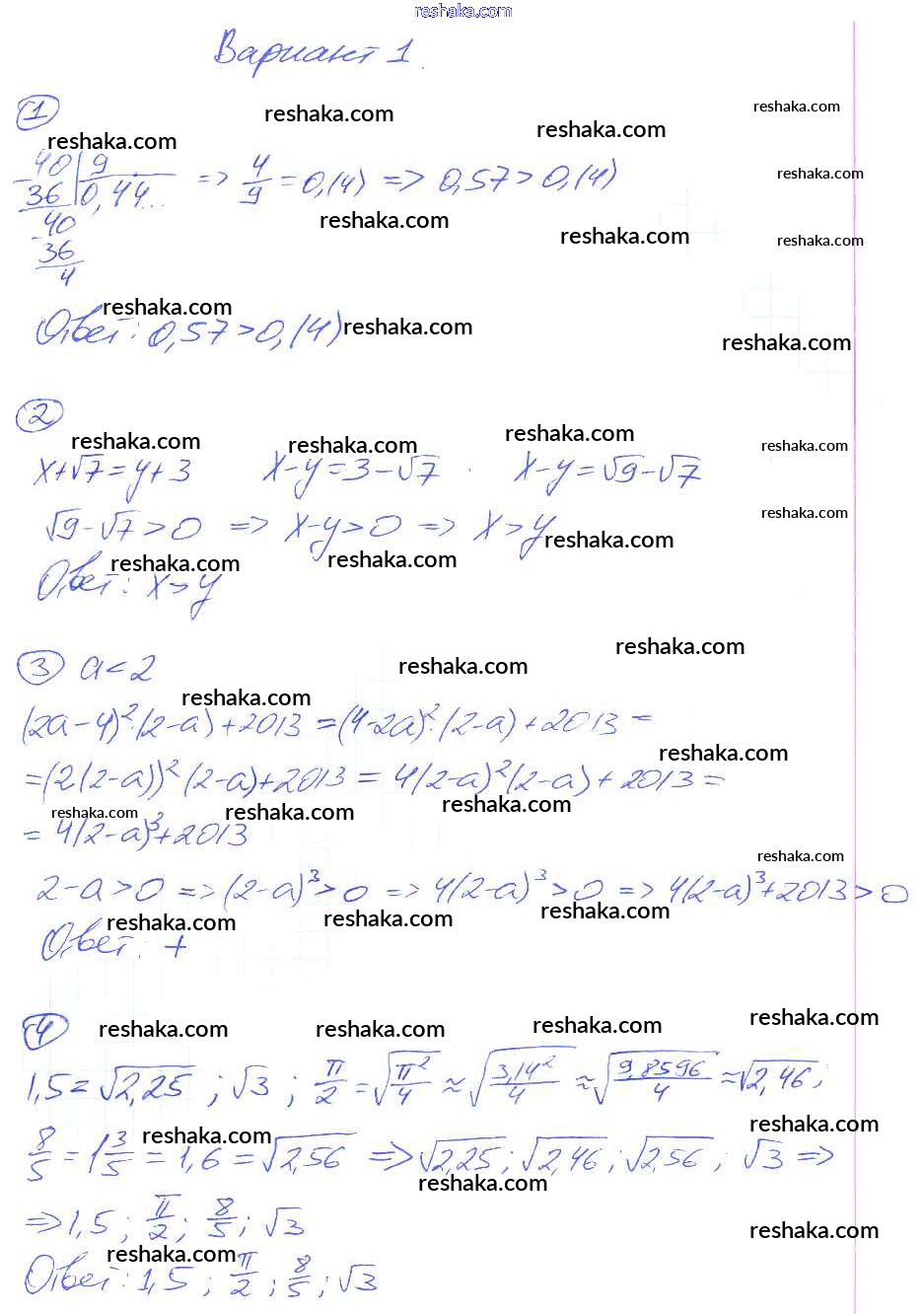 Решака - онлайн ответы Алгебра Попов за 8 класс Дидактические материалы ФГОС 2014 - вариант-1