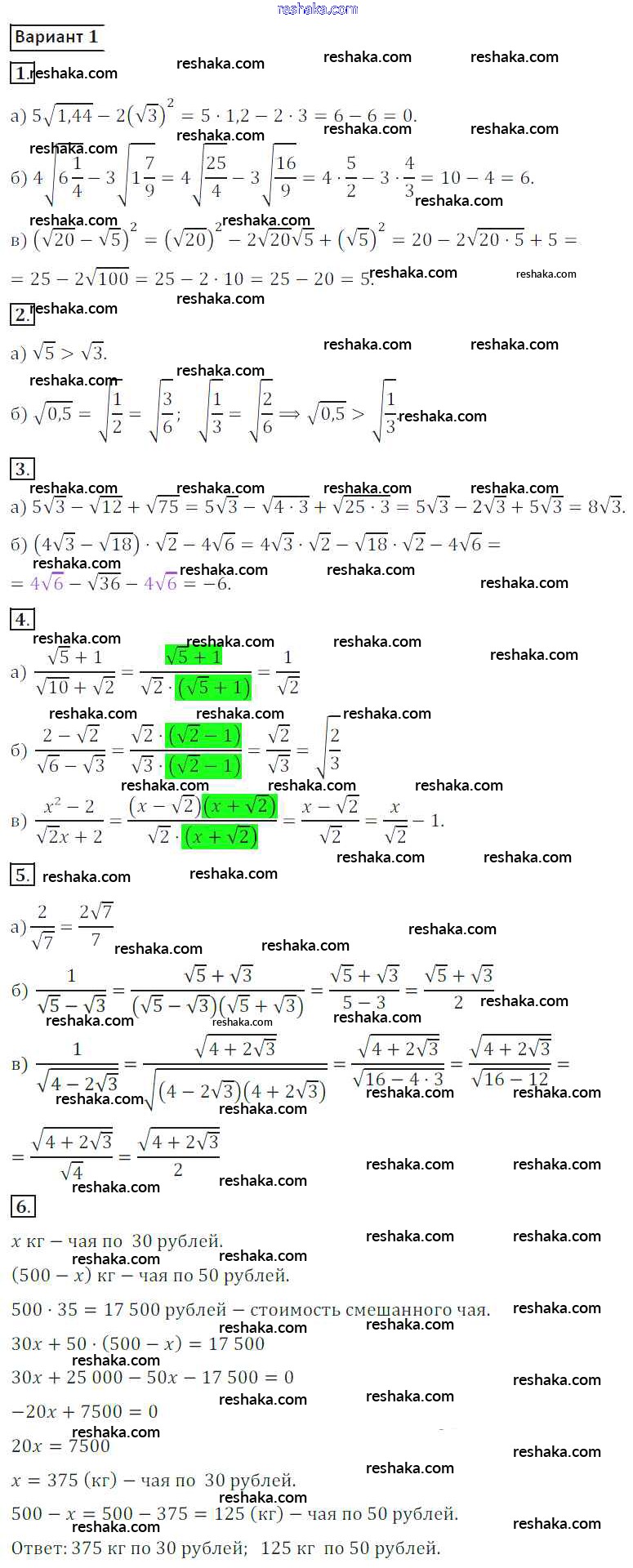 Решака - онлайн ответы Алгебра Потапов, Шевкин за 8 класс Дидактические материалы ФГОС 2017 - вариант 1