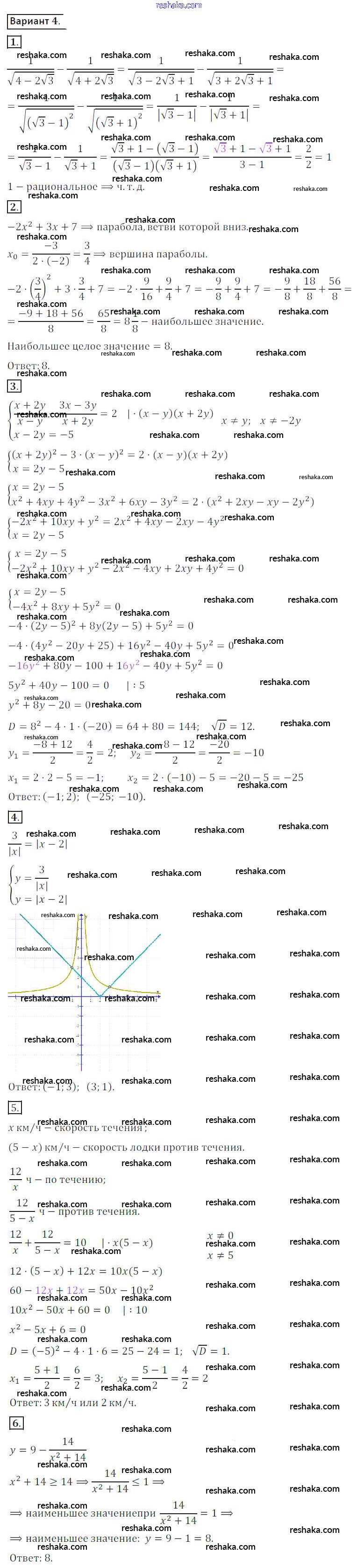 Решака - онлайн ответы Алгебра Потапов, Шевкин за 8 класс Дидактические материалы ФГОС 2017 - вариант 4