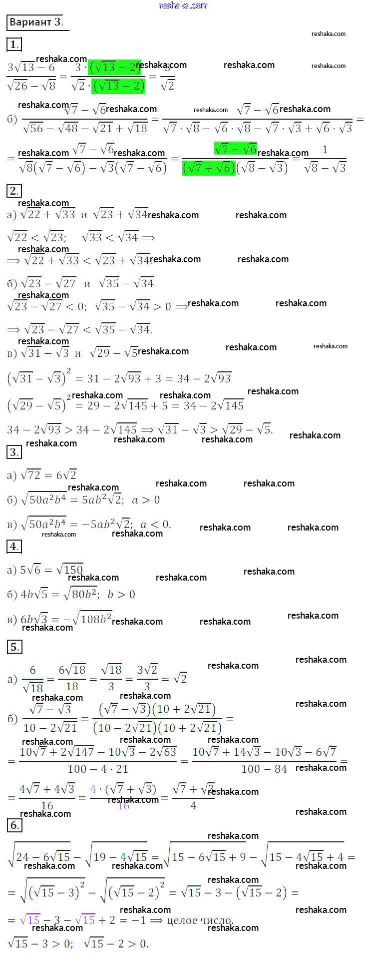 Решака - онлайн ответы Алгебра Потапов, Шевкин за 8 класс Дидактические материалы ФГОС 2017 - вариант 3