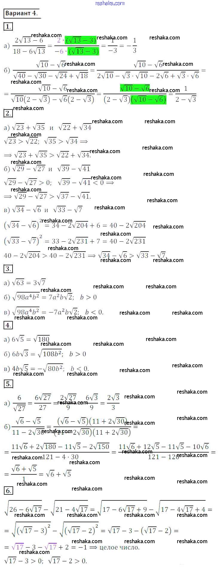 Решака - онлайн ответы Алгебра Потапов, Шевкин за 8 класс Дидактические материалы ФГОС 2017 - вариант 4