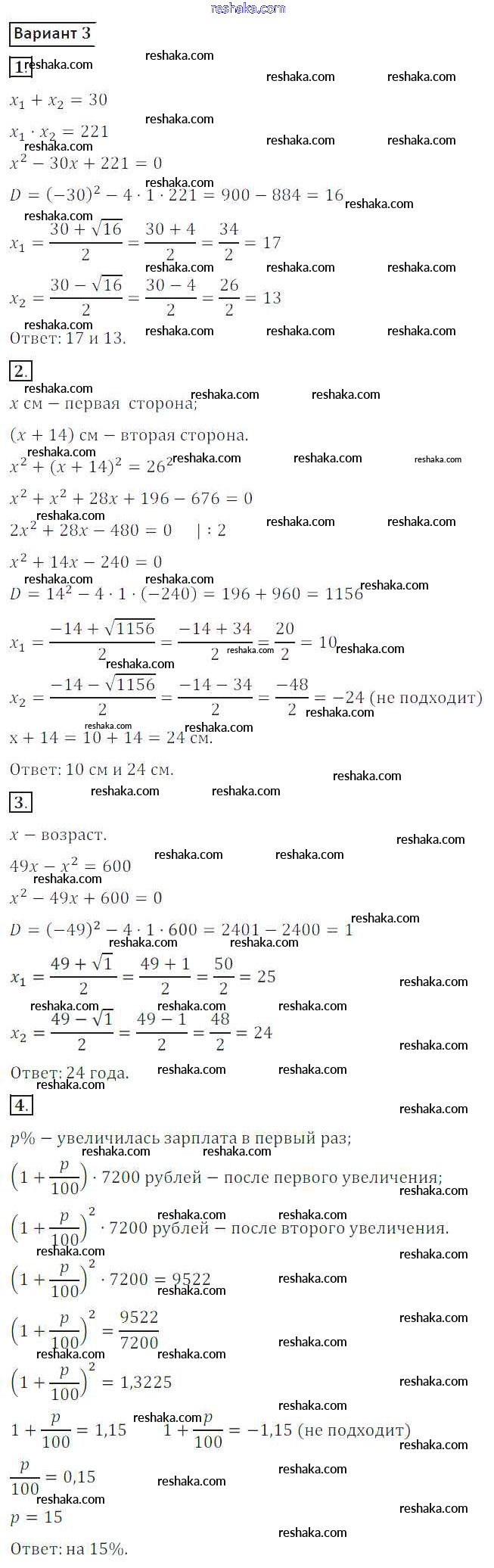 Решака - онлайн ответы Алгебра Потапов, Шевкин за 8 класс Дидактические материалы ФГОС 2017 - вариант 3