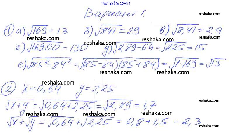 Решака - онлайн ответы Алгебра Евстафьева, Карп за 8 класс Дидактические материалы ФГОС 2017 - Вариант 1