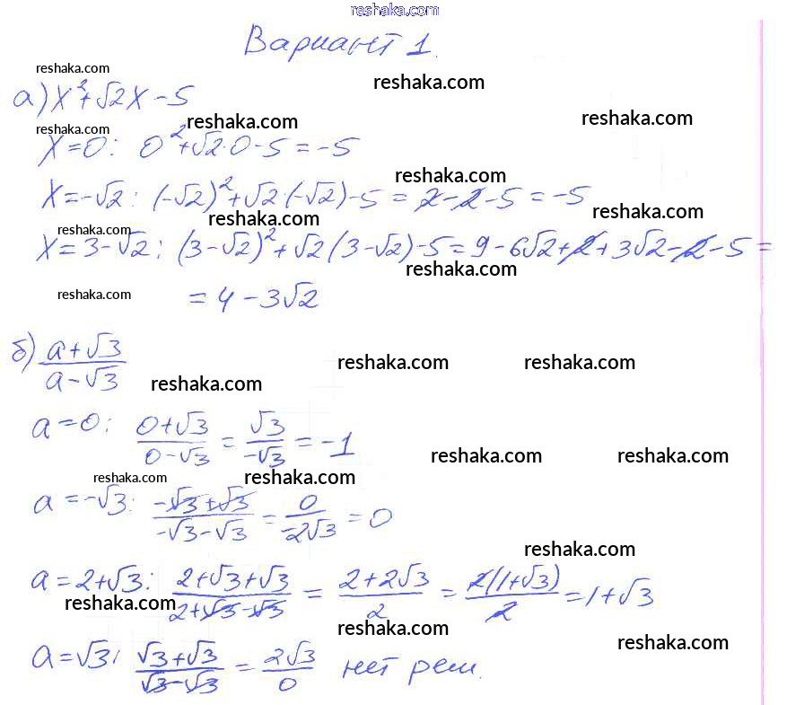Решака - онлайн ответы Алгебра Евстафьева, Карп за 8 класс Дидактические материалы ФГОС 2017 - Вариант 1