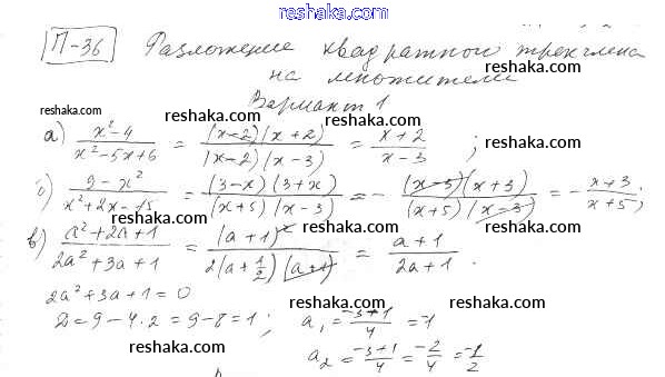 Представляем вам сборники по Алгебре, с готовыми ответами к Дидактическим материалам Евстафьева школьной программы для учеников восьмой класса. Это не просто гдз с ответом, а с подсказками, как верно решить П-36. Разложение квадратного трехчлена на множители Проверочные задания Вариант 1. Проверяй домашку с умом и получай высший балл!