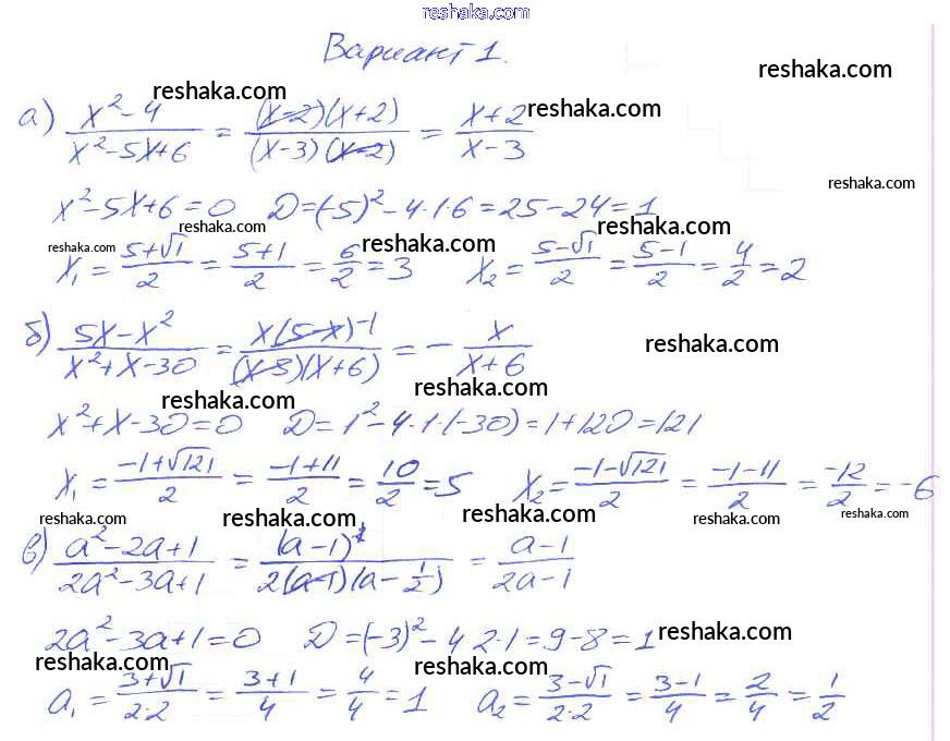 Решака - онлайн ответы Алгебра Евстафьева, Карп за 8 класс Дидактические материалы ФГОС 2017 - Вариант 1