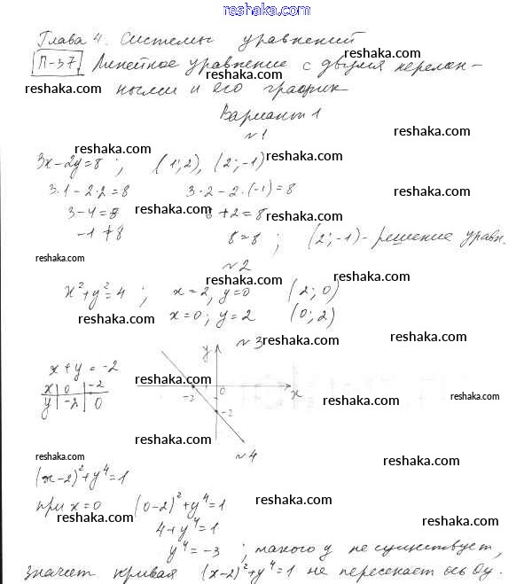 Представляем вам сборники по Алгебре, с готовыми ответами к Дидактическим материалам Евстафьева школьной программы для учеников восьмой класса. Это не просто гдз с ответом, а с подсказками, как верно решить П-37. Линейное уравнение с двумя переменными и его график Проверочные задания Вариант 1. Проверяй домашку с умом и получай высший балл!