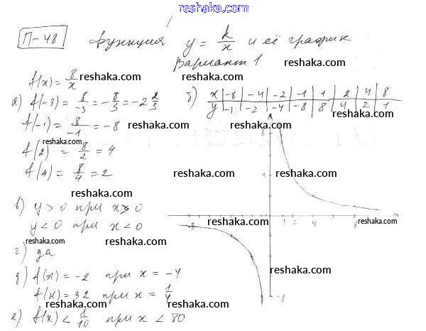 Представляем вам сборники по Алгебре, с готовыми ответами к Дидактическим материалам Евстафьева школьной программы для учеников восьмой класса. Это не просто гдз с ответом, а с подсказками, как верно решить П-48. Функция y = k:x и ее график Проверочные задания Вариант 1. Проверяй домашку с умом и получай высший балл!