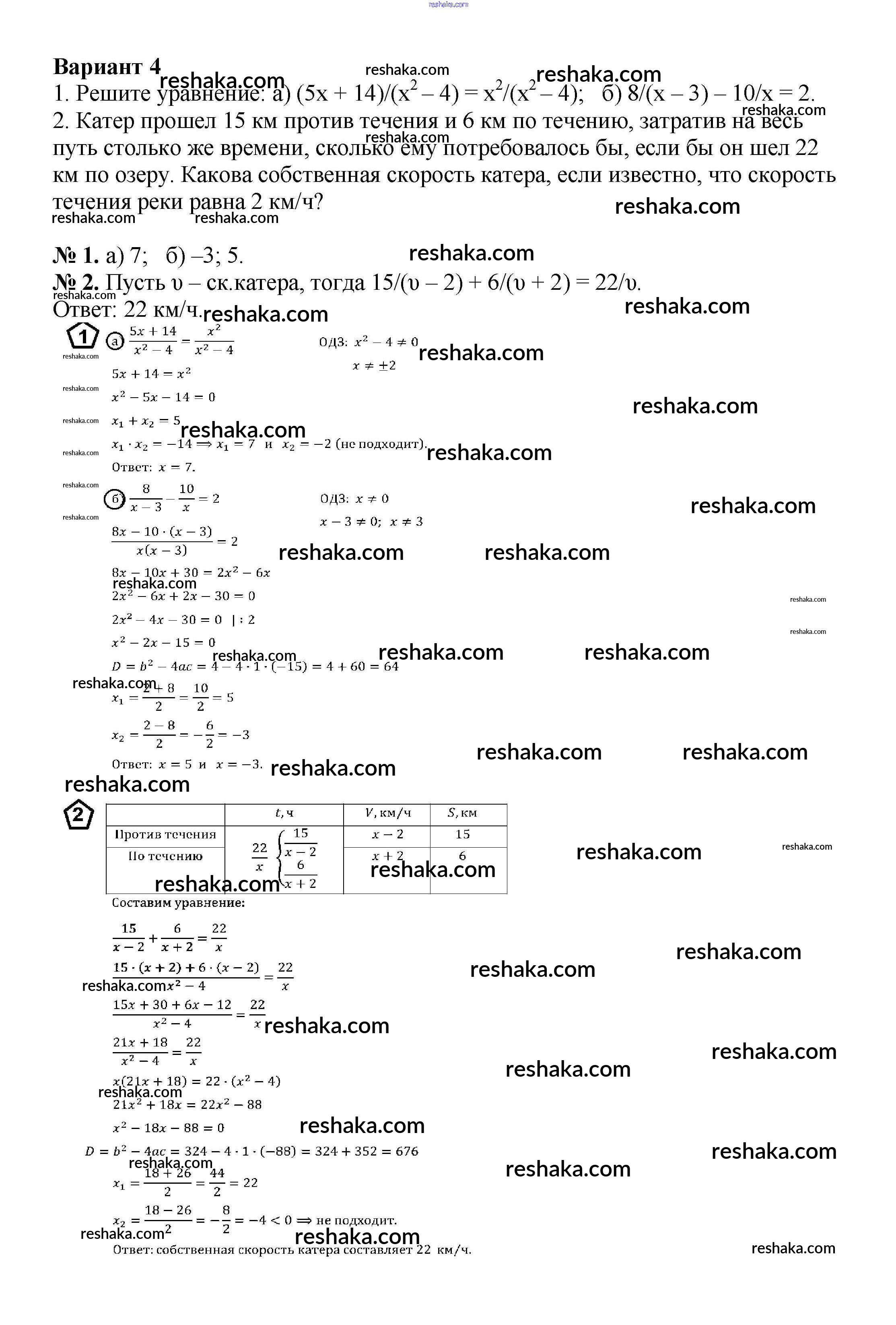 Решака - онлайн ответы Алгебра Жохов, Макарычев за 8 класс Дидактические материалы ФГОС 2014 - вариант 4