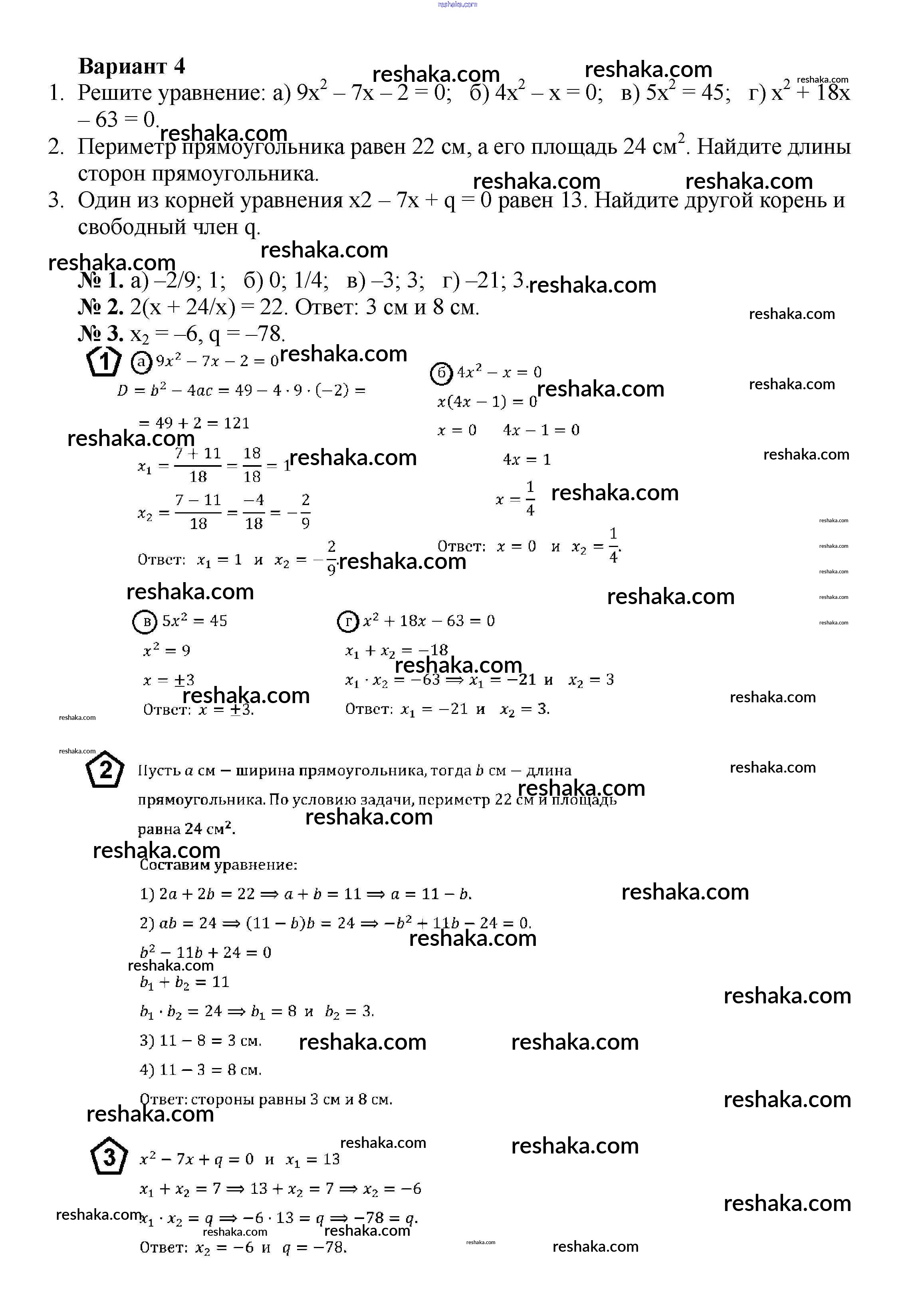 Решака - онлайн ответы Алгебра Жохов, Макарычев за 8 класс Дидактические материалы ФГОС 2014 - вариант 4
