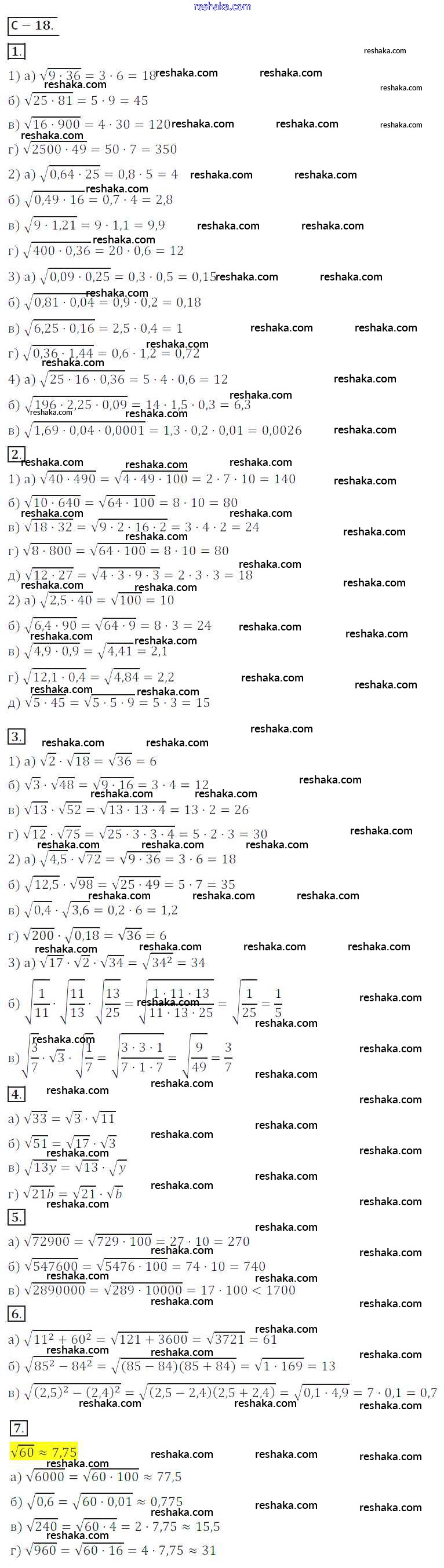 Решака - онлайн ответы Алгебра Жохов, Макарычев за 8 класс Дидактические материалы ФГОС 2014 - СР №18