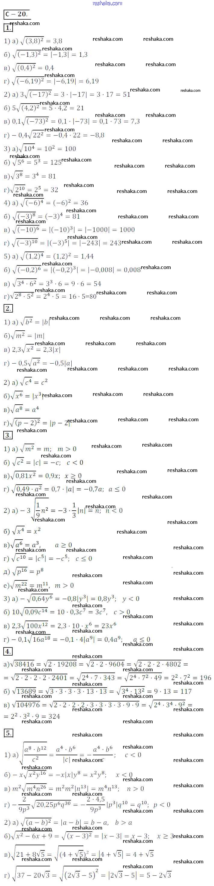 Решака - онлайн ответы Алгебра Жохов, Макарычев за 8 класс Дидактические материалы ФГОС 2014 - СР №20
