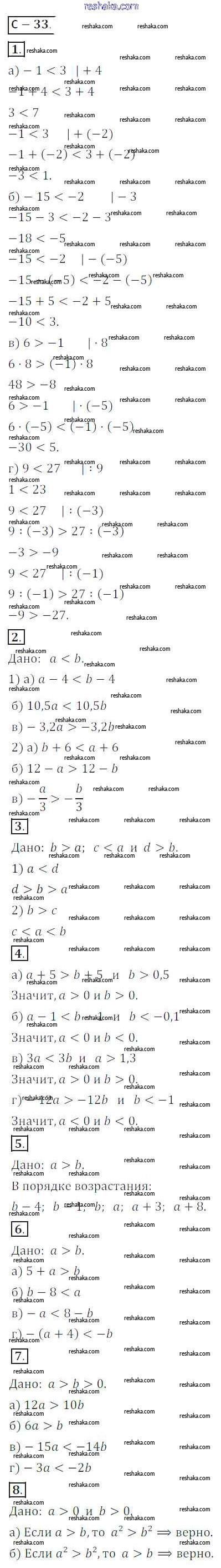 Решака - онлайн ответы Алгебра Жохов, Макарычев за 8 класс Дидактические материалы ФГОС 2014 - СР №33