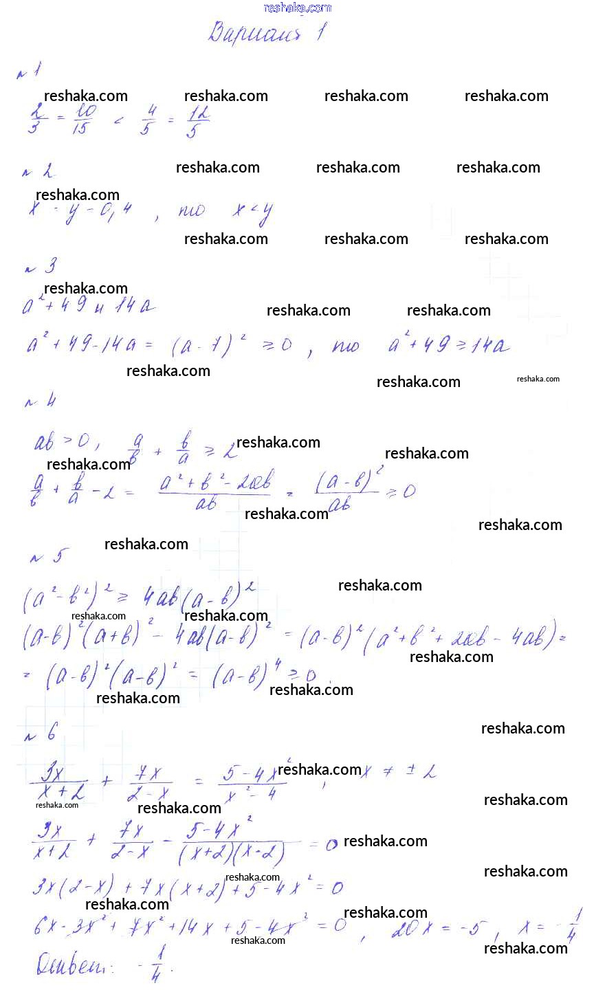 Решака - онлайн ответы Алгебра Зив, Гольдич за 8 класс Дидактические материалы ФГОС 2012 - Вариант-1