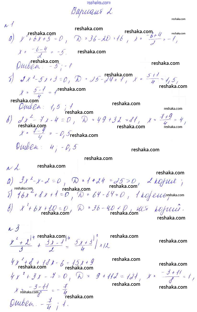 Решака - онлайн ответы Алгебра Зив, Гольдич за 8 класс Дидактические материалы ФГОС 2012 - Вариант-2