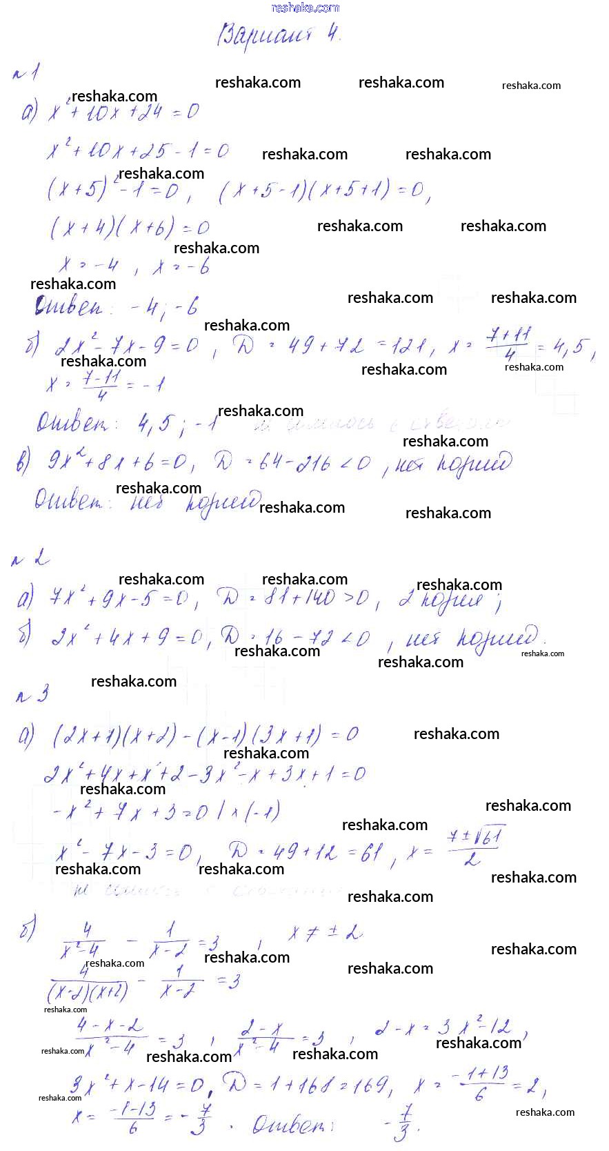 Решака - онлайн ответы Алгебра Зив, Гольдич за 8 класс Дидактические материалы ФГОС 2012 - Вариант-4