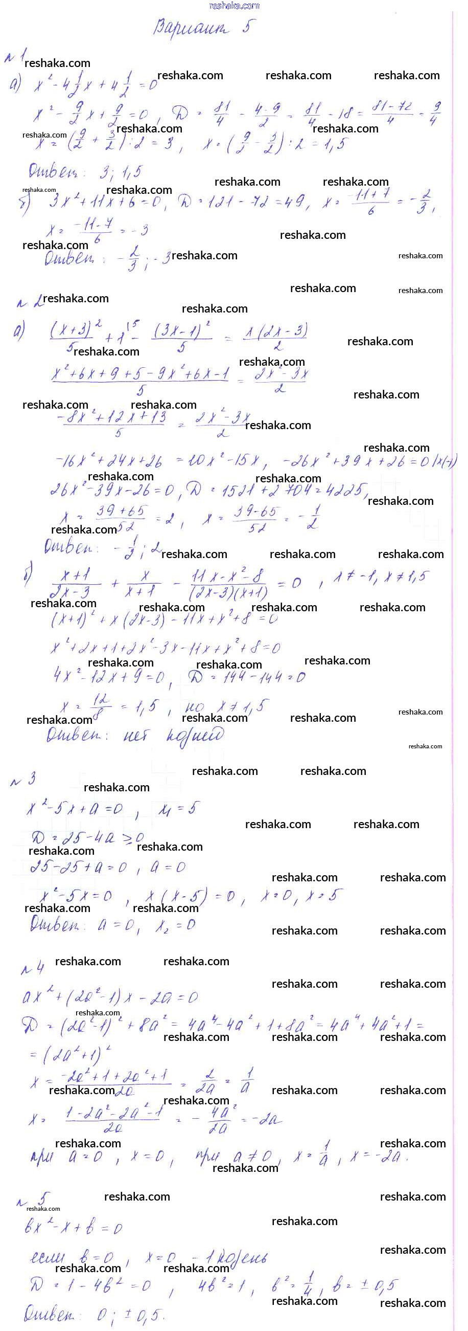 Решака - онлайн ответы Алгебра Зив, Гольдич за 8 класс Дидактические материалы ФГОС 2012 - Вариант-5