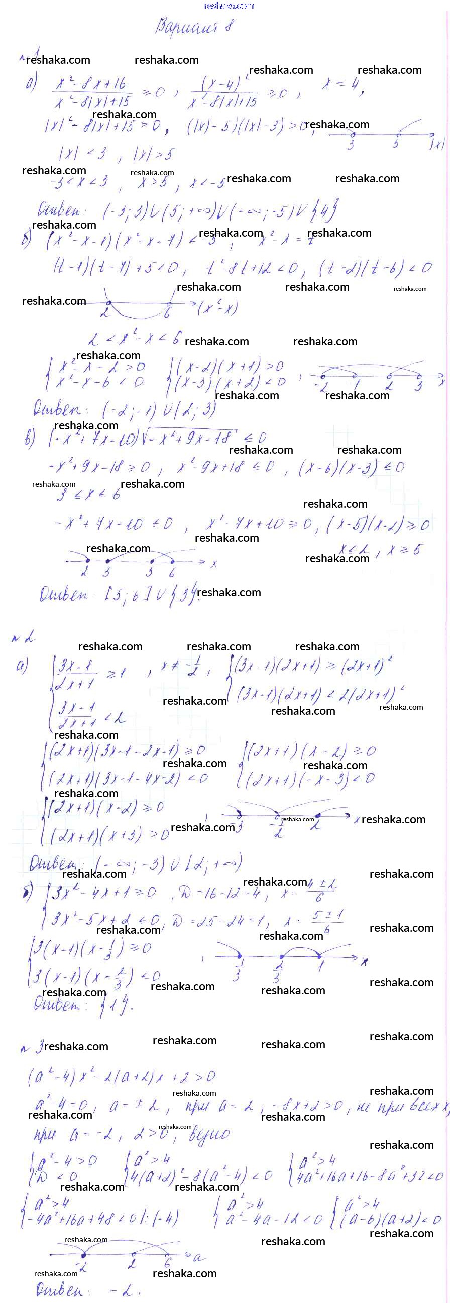 Решака - онлайн ответы Алгебра Зив, Гольдич за 8 класс Дидактические материалы ФГОС 2012 - Вариант-8