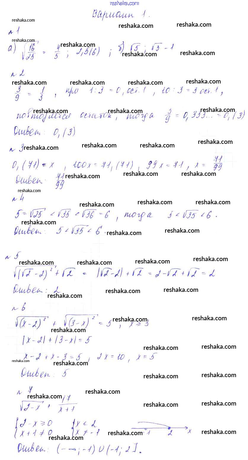 Решака - онлайн ответы Алгебра Зив, Гольдич за 8 класс Дидактические материалы ФГОС 2012 - Вариант-1
