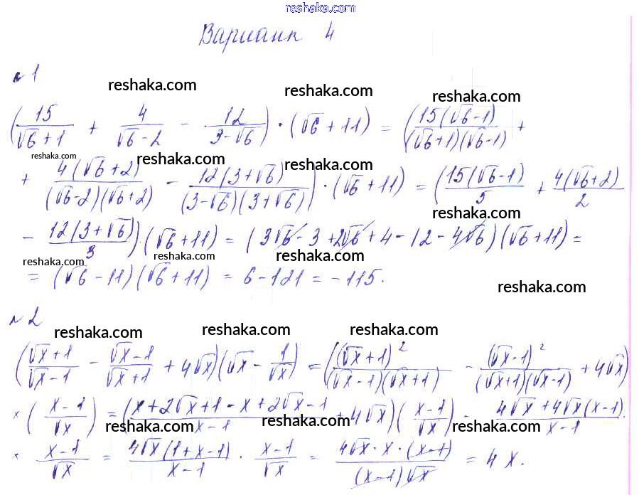 Решака - онлайн ответы Алгебра Зив, Гольдич за 8 класс Дидактические материалы ФГОС 2012 - Вариант-4
