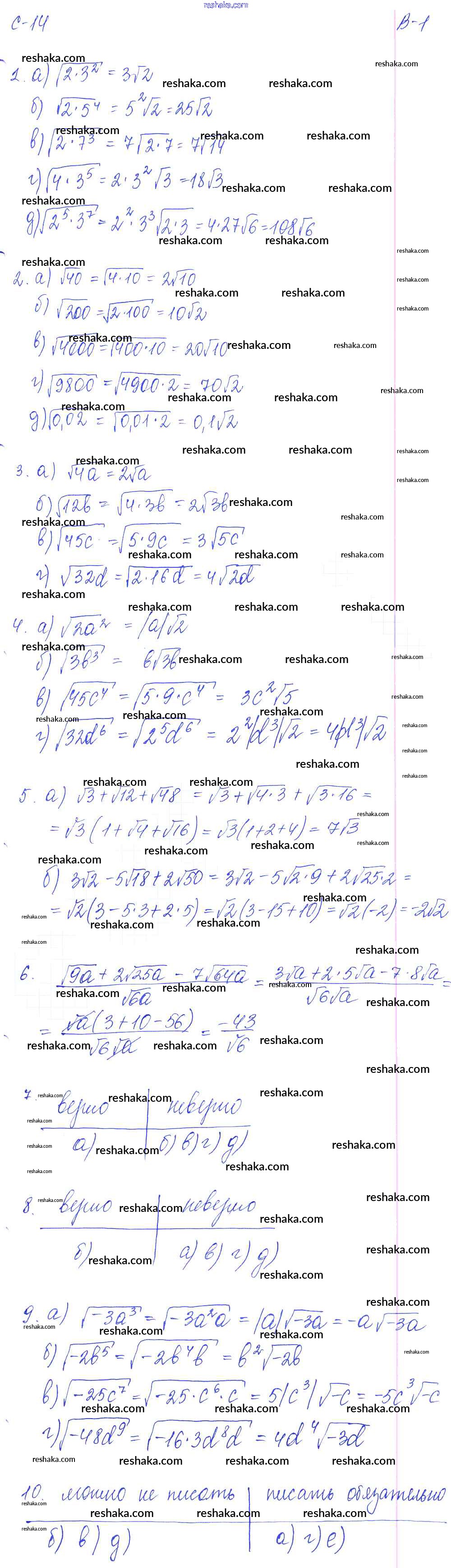 Представляем вам сборники по Алгебре, с готовыми ответами к Дидактическим материалам Звавич школьной программы для учеников восьмой класса. Это не просто гдз с ответом, а с подсказками, как верно решить СР - 14. Вынесение множителя из-под знака корня Самостоятельные работы. Варианты 1. Проверяй домашку с умом и получай высший балл!