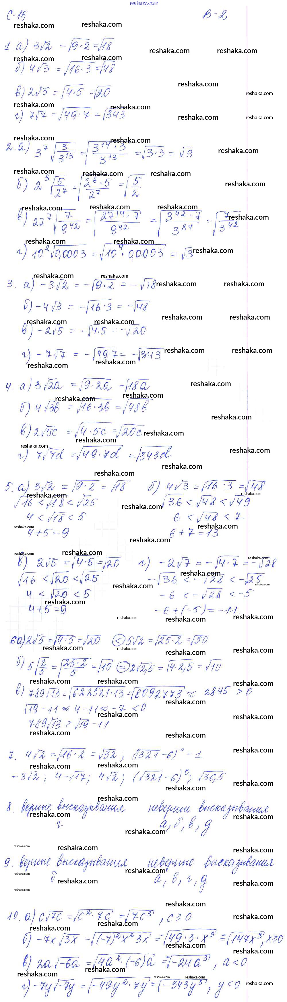 Представляем вам сборники по Алгебре, с готовыми ответами к Дидактическим материалам Звавич школьной программы для учеников восьмой класса. Это не просто гдз с ответом, а с подсказками, как верно решить СР - 15. Внесение множителя под знак корня Самостоятельные работы. Варианты 2. Проверяй домашку с умом и получай высший балл!