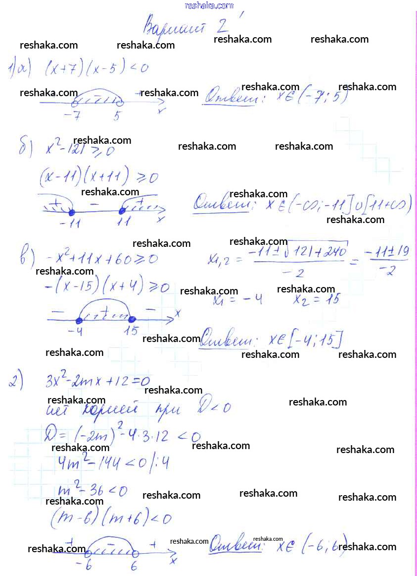 Решака - онлайн ответы Алгебра Александрова за 9 класс Самостоятельные работы Базовый уровень ФГОС 2016 - вариант 2