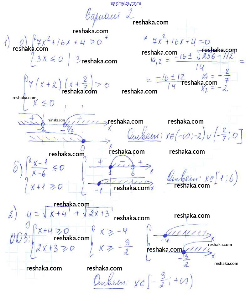 Решака - онлайн ответы Алгебра Александрова за 9 класс Самостоятельные работы Базовый уровень ФГОС 2016 - вариант 2