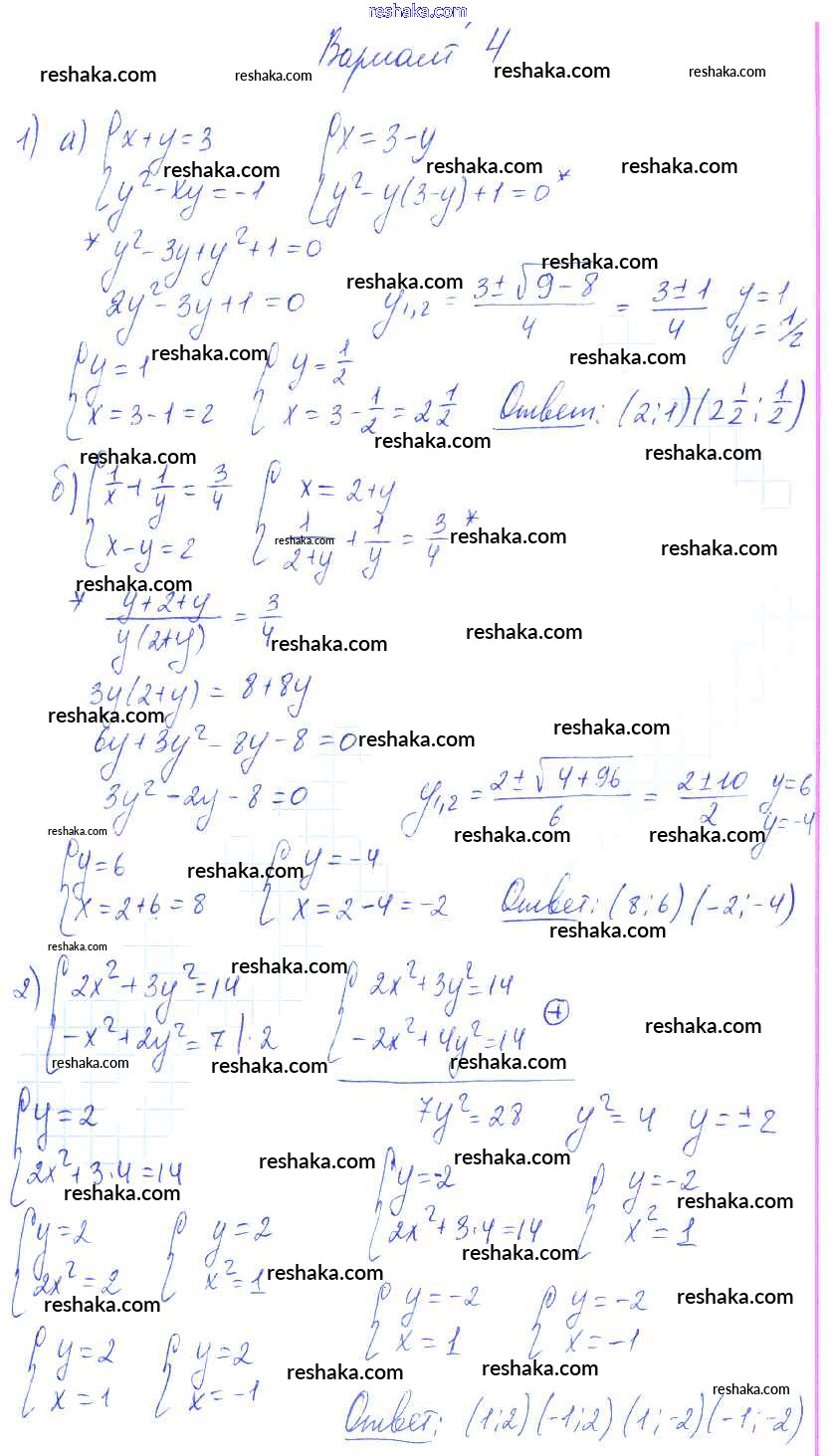 Решака - онлайн ответы Алгебра Александрова за 9 класс Самостоятельные работы Базовый уровень ФГОС 2016 - вариант 4