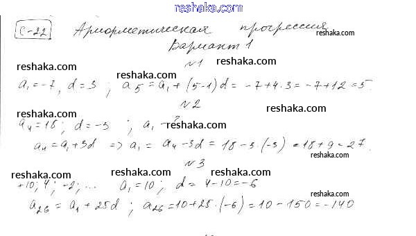 Представляем вам сборники по Алгебре, с готовыми ответами к Самостоятельным работам Александрова школьной программы для учеников девятый класса. Это не просто гдз с ответом, а с подсказками, как верно решить СР-22. Арифметическая прогрессия Тема 4. Прогрессии вариант 1. Проверяй домашку с умом и получай высший балл!