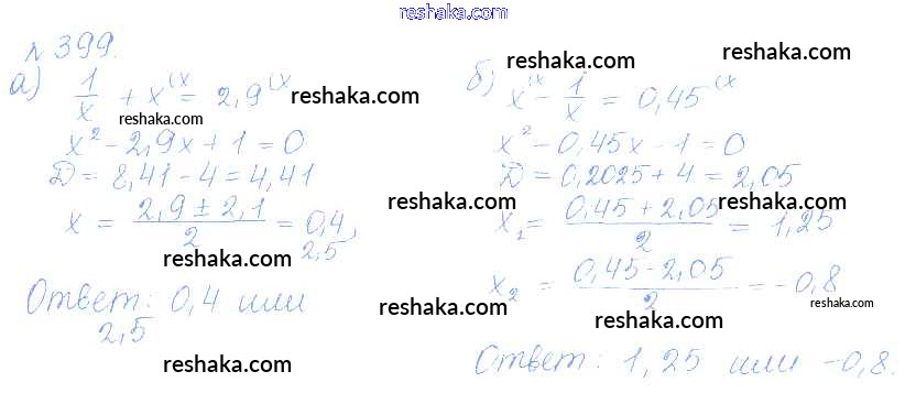 Представляем вам сборники по Алгебре, с готовыми ответами к Учебнику Дорофеев школьной программы для учеников девятый класса. Это не просто гдз с ответом, а с подсказками, как верно решить Упражнения 399. Проверяй домашку с умом и получай высший балл!