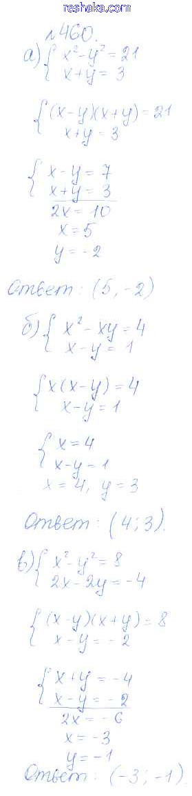 Представляем вам сборники по Алгебре, с готовыми ответами к Учебнику Дорофеев школьной программы для учеников девятый класса. Это не просто гдз с ответом, а с подсказками, как верно решить Упражнения 460. Проверяй домашку с умом и получай высший балл!