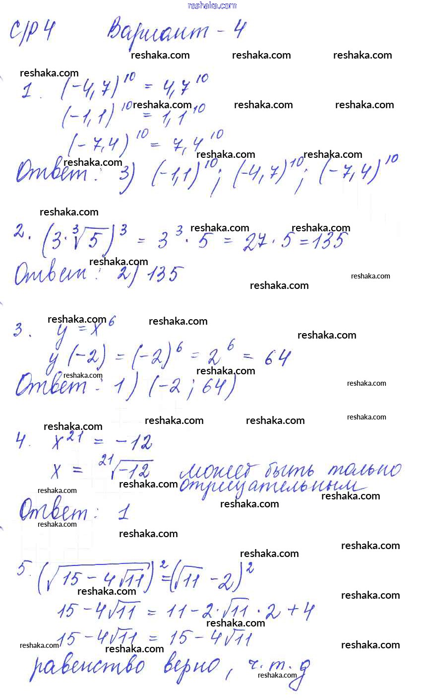 Представляем вам сборники по Алгебре, с готовыми ответами к Самостоятельным и контрольным работам Глазков школьной программы для учеников девятый класса. Это не просто гдз с ответом, а с подсказками, как верно решить СР-4. Степенная функция. Корень n-й степени Самостоятельные работы вариант 4. Проверяй домашку с умом и получай высший балл!