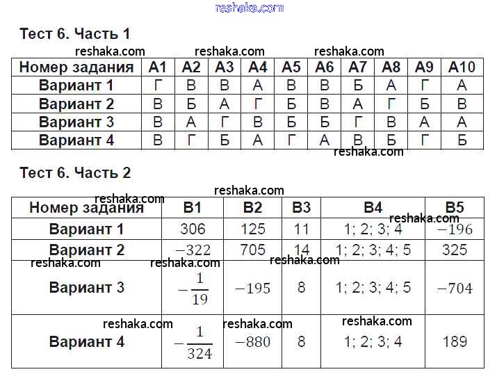 Решака - онлайн ответы Алгебра Ключникова, Комиссарова за 9 класс Тесты ФГОС 2011 - Тест №6